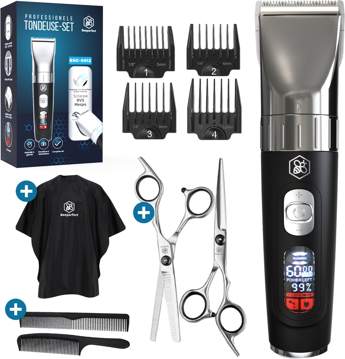 De Beeperfect® Professionele Tondeuse is de ultieme trimmer voor mannen die op zoek zijn naar een perfect, strak kapsel. De tondeuse heeft een krachtige motor die je haar moeiteloos stijlt voor een perfecte look. Het is een complete set die alles bevat wat je nodig hebt voor een professionele en comfortabele trimbeleving, inclusief een tondeuse, een baardtrimmer, een hoofdhaar trimmer, en een gratis kappersset. Deze tondeuse is gemaakt van hoogwaardig materiaal dat lang meegaat. Het heeft een ergonomisch ontwerp voor een comfortabele grip, waardoor je gemakkelijk de haarlengte kunt aanpassen. De tondeuse heeft een instelbare trimhoek van 0 ° tot 45 ° voor een perfecte stijl. Bovendien zijn er verschillende opzetstukken voor verschillende haarstijlen, zoals kort, medium, lang, en verschillende lagen. De tondeuse is voorzien van een oplaadbare batterij die tot 70 minuten werkt en is waterdicht voor eenvoudig reinigen. De set bevat ook een kappersset met een schaar, een kam, een borstel en een kapperskoffer. Ontdek de Beeperfect® Professionele Tondeuse en transformeer je haar moeiteloos naar een perfect,.